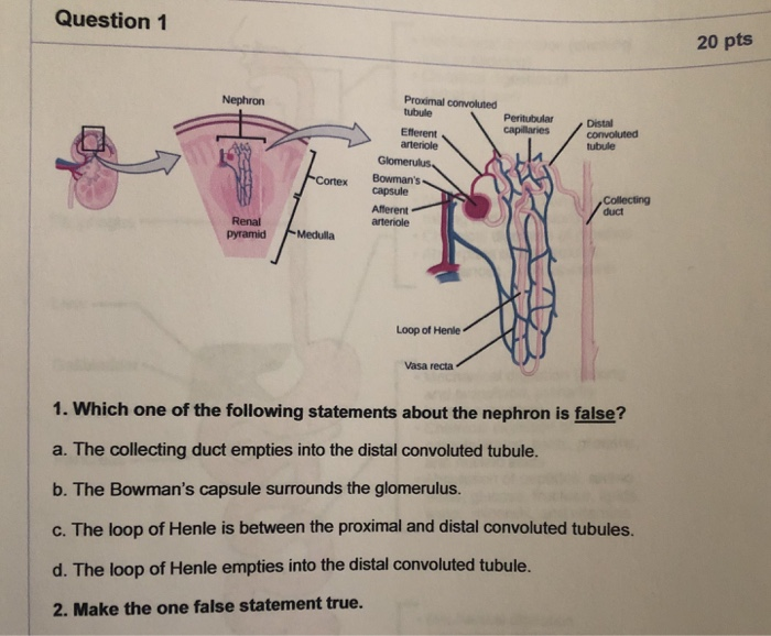 Solved Question1 20 Pts Nephron Proximal Convoluted Tubule Chegg Com